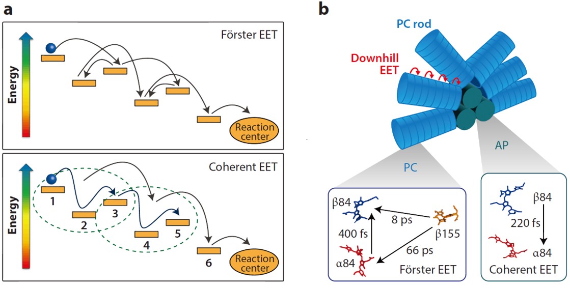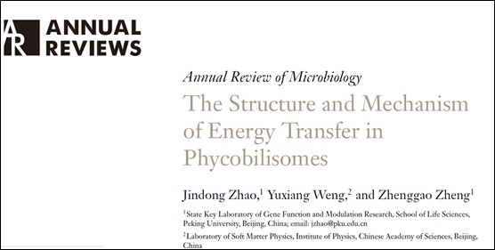 2025年10月24日,yl6809永利官网、基因功能研究与操控全国重点实验室赵进东教授课题组应邀在《微生物学年鉴》(Annual Review of Microbiology)上发表了题为“The Structure and Mechanism of Energy Transfer in Phycobilisomes”的长篇综述。研究显示地球上约30%的光合作用由藻胆体(phycobilisome)吸收的光能驱动。综述系统梳理了近年来藻胆体结构解析以及能量传递机制研究的重要进展,重点探讨了藻胆体的结构和组装、蛋白与发色团之间的相互作用,提出了藻胆体能量传递具有near-unity效率的机制模型。综述还对藻胆体介导的状态调节研究领域中未解决的难题进行了分析,并探讨了藻胆体与光系统之间的相互作用和能量传递机制的研究方向。