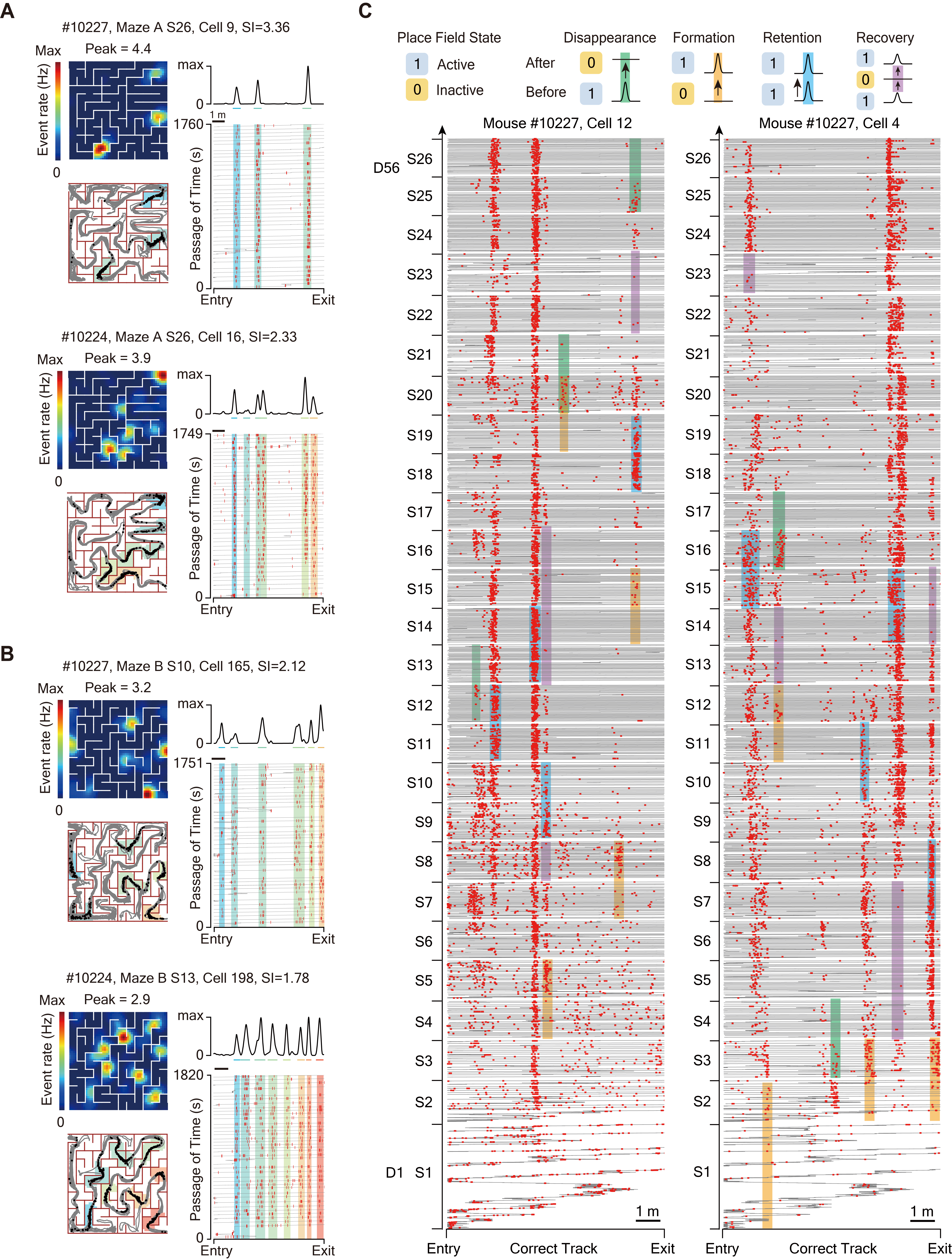 图 2. 迷宫中的位置细胞和长时程演化