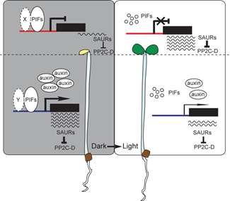 植物发育同时受到外源环境和内源激素的调控。光和赤霉素分别是极其重